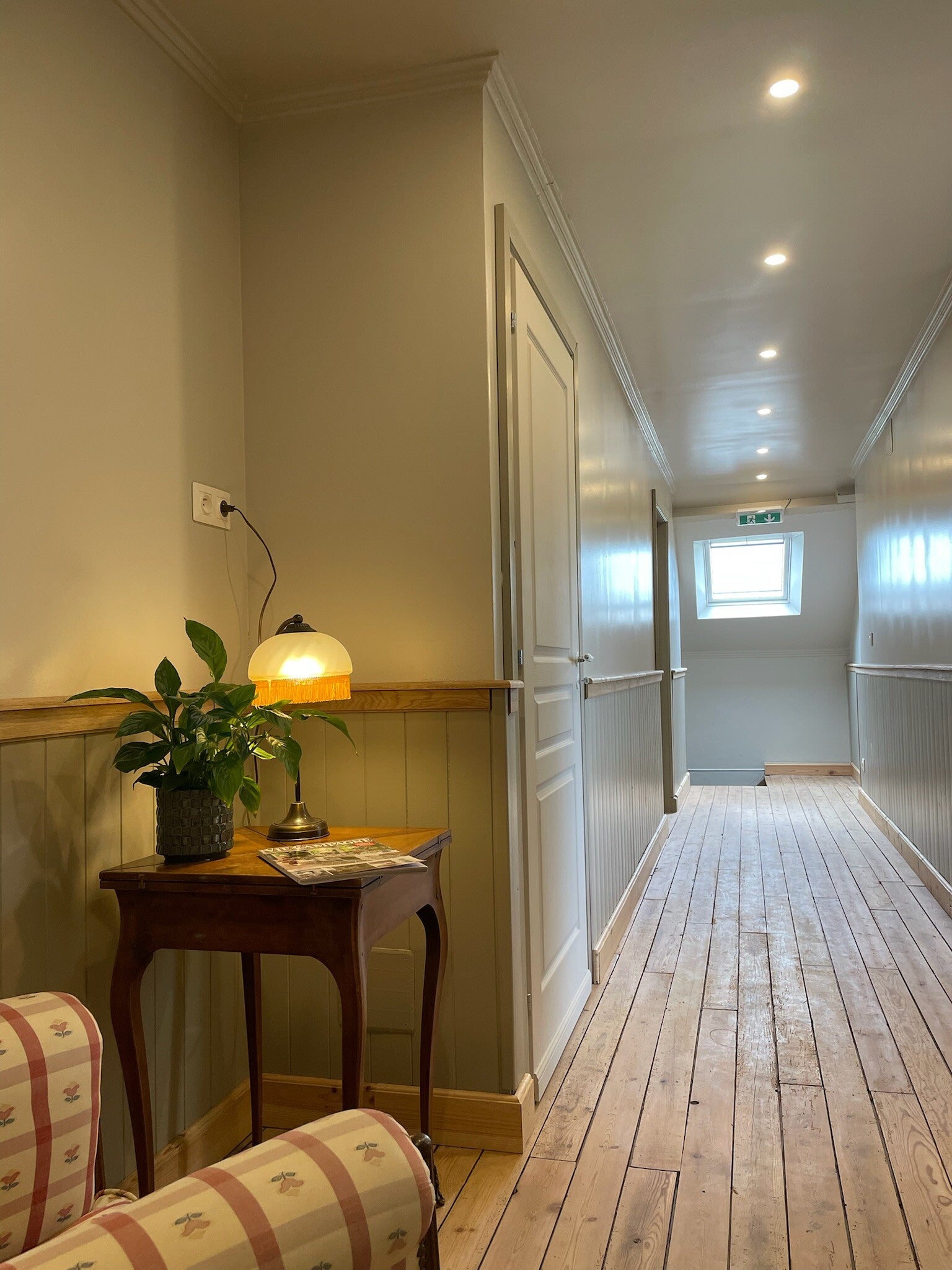 Deze kamer (20,5m²) bevindt zich op de eerste verdieping met een groot openzwaaiend velux raam dat zicht geeft op een wijds heuvellandschap in het zuiden.